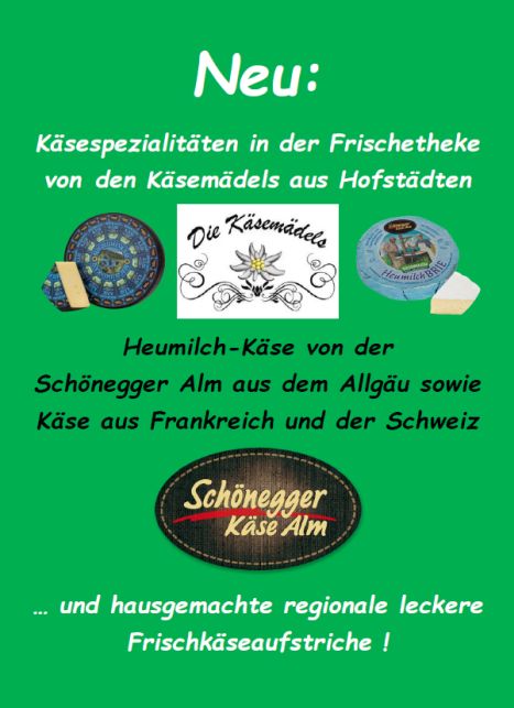 Öffnungszeiten: Mo, Mi, Do, Fr: 6.30 – 18.00 Uhr | Di + Sa: 6.30 – 13.00 Uhr sowie personallos mit Selfscanningkasse 24/7 geöffnet