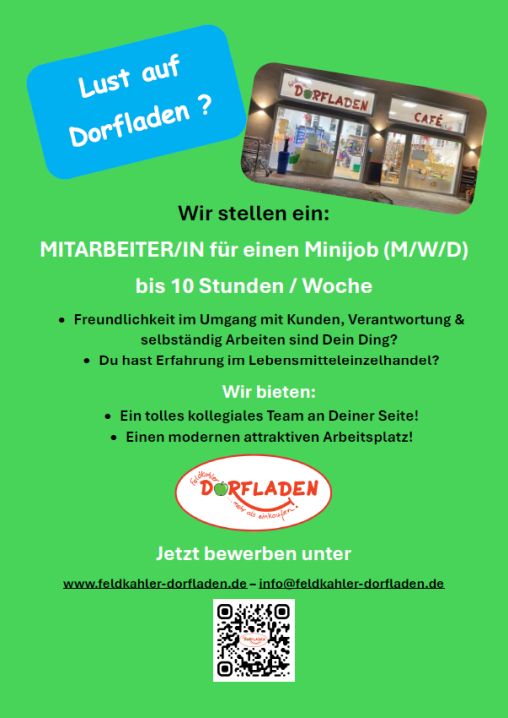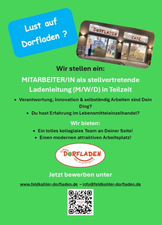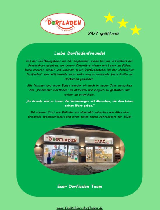 Für unseren Ort bietet der „Feldkahler Dorfladen“ eine Chance wieder die Lebensqualität von uns Allen zu steigern.